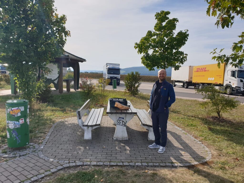 Der Tag begann für uns beide heut schon sehr früh, da die Anreise zum Flughafen Frankfurt mit dem Auto geplant war. Jan sackte mich auf dem Weg in Schkeuditz (bei Leipzig) ein und nach einem kurzen Kaffee-Stopp bei McDonalds ging es direkt wieder auf die Autobahn. Wir rollten gemütlich über die A9 bis zum Hermsdorfer Kreuz und anschließend weiter auf der A4, bis wir entschieden eine Frühstückspause auf dem Rastplatz Hainich einzulegen. Hier aßen wir die geschmierten Brötchen und früh noch frisch gekochten Hühnereier aus Bernburg. Ausgeruht und gestärkt ging es dann weiter Richtung Frankfurt am Main. Glücklicherweise blieben wir von größeren Verzögerungen verschont und dachten bei jedem Stau auf der Gegenfahrbahn nur „hoffentlich trifft uns das nicht“!