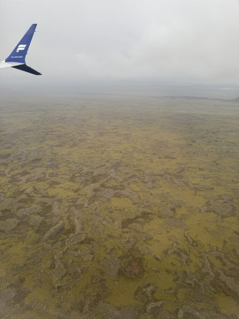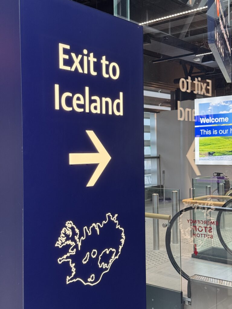 Der Flug war bis auf leichte Turbulenzen unspektakulär und wir konnten sogar ein wenig schlafen bis wir in den Landeanflug auf Island übergingen. Leider war es uns durch eine dicke Wolkendecke nicht vergönnt einen Blick aus der Luft über die Insel zu erhaschen. Landung und Start bleiben weiterhin nicht meine Favoriten beim Fliegen, gehören aber irgendwie dazu. Am Gate angekommen, gab es irgendwelche, nicht näher definierten, Probleme mit der Tür, so dass alle Passagiere gebeten wurden auf ihren Plätzen geduldig zu warten. Es dauerte noch ungefähr 30 Minuten bis das Flugzeug in einer Position war, die eine Öffnung der Tür erlaubte. Der Blick aus dem Fenster versprach erstmal nichts Gutes für heute, da wir direkt mit Wind und Regen begrüßt wurden. Wer hätte das gedacht!?