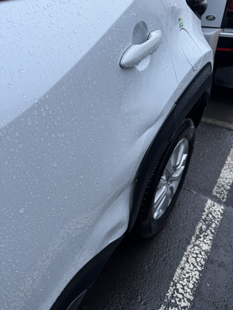Nachdem wir zügig unser Gepäck abgeholt hatten, ging es direkt weiter zur Abholung des Mietwagens. Auch die Mitarbeiter der Autovermietung gehören nicht zur schnellen Sorte und wir mussten nochmals eine halbe Stunde warten. Dann verließen wir zum ersten Mal das Flughafengebäude und die Wetter-App hatte mit den gefühlten -1 °C nicht zu viel versprochen. Es war windig, kalt und irgendwie ganz schön unwirtlich. Allerdings konnten wir nun beide unsere neuen Winter-Regenjacken testen. Am Auto angekommen, stellten wir einen größeren Schaden an der hinteren Tür fest und wir waren unsicher ob dieser korrekt erfasst war oder uns später angelastet werden könnte. Es ging zurück zum Schalter, nur um dann von dort weiter zur anderen Seite des Parkplatz geschickt zu werden. Der nette Mitarbeiter an der Autorückgabe hat uns dann bestätigt, dass der Schaden im System erfasst und bekannt sei. Damit waren wir zufrieden und es stand unserer motorisierten Erkundung Islands nichts mehr im Wege.