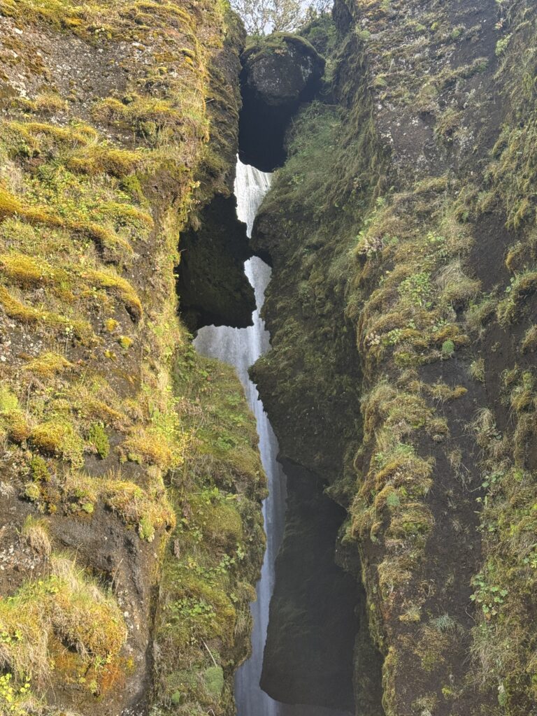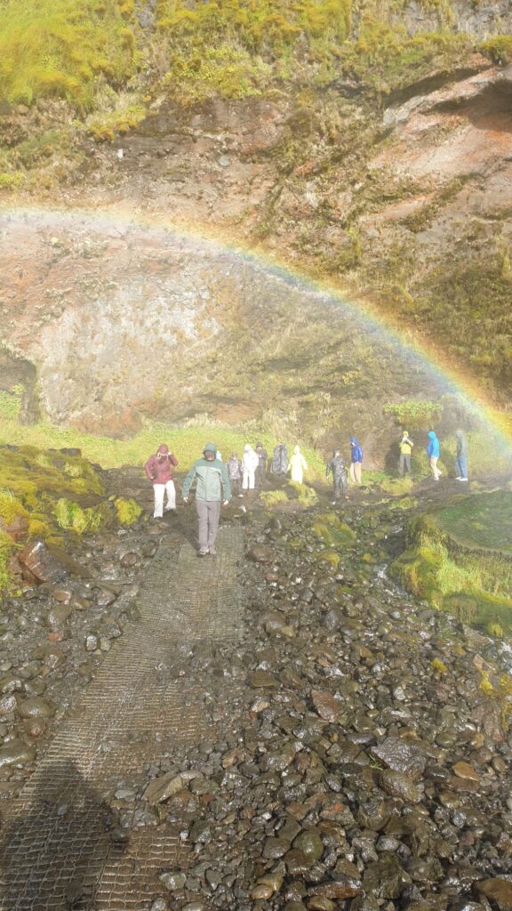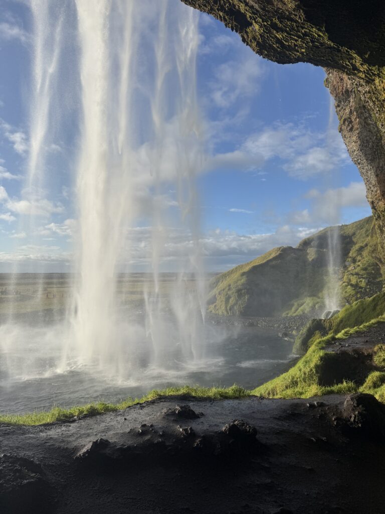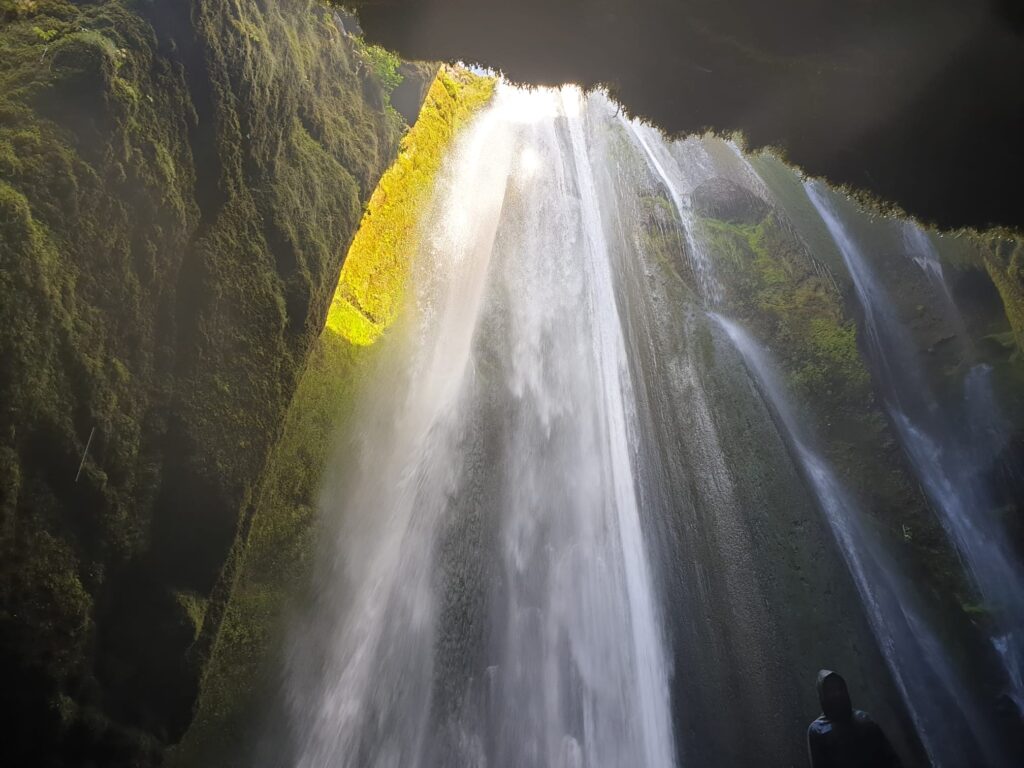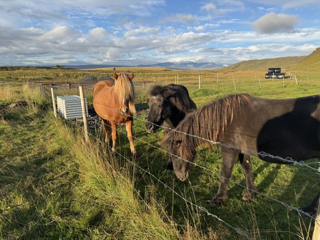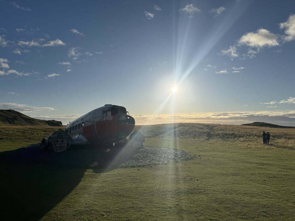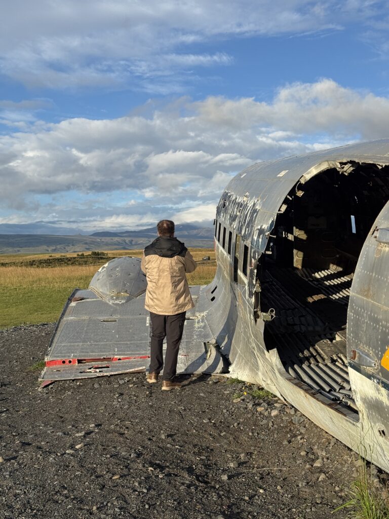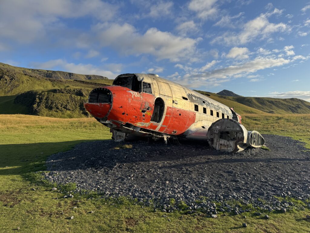 Wieder auf der Route 1 ging es weiter Richtung Osten durch die weiten Ebenen Islands. Nach wenigen Kilometern erreichten wir auch schon das Dalssel Farm Guesthouse, unsere Unterkunft für die kommende Nacht. Der Eigentümer begrüßte uns direkt und erklärte uns wie er kurz vor der Covid-Pandemie im Frühjahr 2020 die alte Scheune in ein Gästehaus umbaute. Zusätzlich gab er uns noch viele Tipps für die folgenden Tage, so dass wir erst nach mehr als 30 Minuten wieder aufbrechen konnten… zu den letzten geplanten Zielen des heutigen Tages. Unweit von Dalssels Farm gibt es viele Wasserfälle am Fuße des Eyjafjallajökull. Dieser Vulkan hat 2010 weltweite Berühmtheit erlangt in dem er durch seinen Ausbruch den kompletten Flugverkehr auf der Nordhalbkugel zum Erliegen brachte. Am ersten Wasserfall angekommen, fielen uns direkt die bisher kaum wahrgenommenen Touristenmassen auf. Der Seljalandsfoss war beeindruckend und man konnte auf einem Rundweg direkt hinter den Wasserfall und sogar durch einen kleinen Nebenwasserfall hindurchlaufen. Unsere vor dem Urlaub erworbenen Regenjacken leisteten hier hervorragende Dienste. Andere Touristen waren nicht ganz so gut vorbereitet und daher teilweise sehr stark durchnässt. Nur wenige Hundert Meter entfernt lag ein zweiten Wasserfall, der Gljúfrabúi, zu dem wir über einen schönen Weg entlang der Bergkante wanderten. Um diesen Wasserfall richtig bewundern zu können, mussten wir am Rand des Flusses, teilweise durchs Wasser in eine Felsspalte hineinwaten. In der „Höhle“ hatte gerade jemand einen Heiratsantrag gemacht und die aufgestaute Menschenmenge brach dementsprechend in Jubel aus. Wir machten nur ein paar Bilder und verließen dann zügig die Kaverne. Zurück am Auto ging es noch ein Stück weiter nach Norden zum letzten Ziel für heute. Hier in der Gegend ist im Jahr 1969 eine Douglas DC-3 Eyvindarholt abgestürzt. Obwohl der Parkplatz kaum mehr als ein Schotterfeld war, „durften“ wir auch hier per mobiler App die Parkgebühren zahlen. Das Wrack der Maschine kann besichtigt und auch betreten werden. Im Lichte des Sonnenuntergangs bot sich eine schöne Kulisse für Fotos. Auf dem Weg zum Auto machten wir bei ein paar Island-Pferden Halt und ich konnte ein Bild mit einem solchen Pferd machen. Danach ging es nur noch zurück in die Unterkunft.