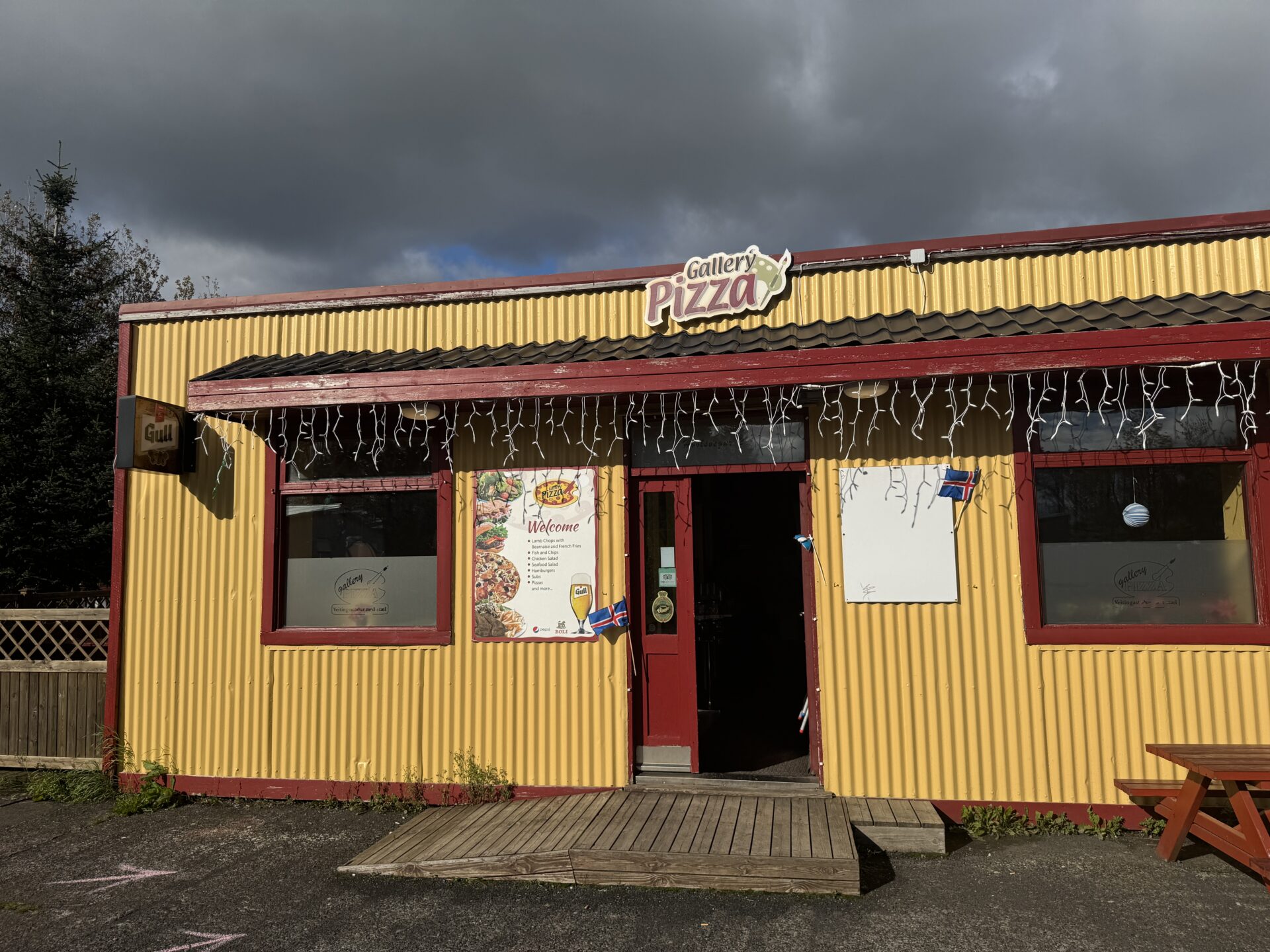 Nun waren wir endlich auf der großen „Ringstraße“ um die gesamte Insel, der Island-Straße 1. Dieser wollten wir in den nächsten Tagen immer weiter folgen, bis wir schlussendlich wieder in Reykjavik ankommen würden. Die nächste größere Stadt war Selfoss. Dort wollten wir einen weiteren kurzen Einkauf tätigen, da wir am Morgen gelernt hatten wie wir schnell und effektiv an den nächsten Tagen frühstücken konnten. Neben Porridge haben wir auch ein paar weitere Snacks für abends und unterwegs mitgenommen. Dann ging es zügig weiter auf der Route 1 bis zum Wasserfall Urriðafoss, der nur wenige Hundert Meter neben der Straße liegt. Hier wunderten wir uns über die Kameras bei der Einfahrt auf den kleinen Parkplatz neben dem Wasserfall. Auf einem Hinweisschild stand, dass Parkgebühren per mobiler App zu entrichten sind und voll elektronisch über eine Nummernschilderkennung verarbeitet werden. Das würden wir auch später auf anderen, teilweise sehr abgelegenen Parkplätzen erneut merken. Der Wasserfall war sehr beeindruckend und gilt als größter Fall Islands, vom Wasservolumen pro Sekunde her. Anschließend ging es weiter auf der Straße vorbei am Ort Hella bis nach Hvolsvöllur. Hier holten wir an der Bank Landsbankinn zum ersten mal Isländisches Bargeld, die berühmten Kronen. Ein Euro entspricht 150 Kronen… somit hatten wir nun viele Tausende bei uns. Außerdem wollten wir im Ort etwas essen, da es von hier bis zu unserer Unterkunft keine weiteren Ortschaften oder Restaurants geben würde. Nach kurzer Recherche zu den lokalen Möglichkeiten fiel unsere Entscheidung auf die Pizzeria Gallery, die zumindest vernünftige Preise zu haben schien. Letztendlich merkten wir nun deutlich, dass selbst einfache Speisen wie eine Pizza auf Island deutlich teurer waren als in Mitteleuropa.