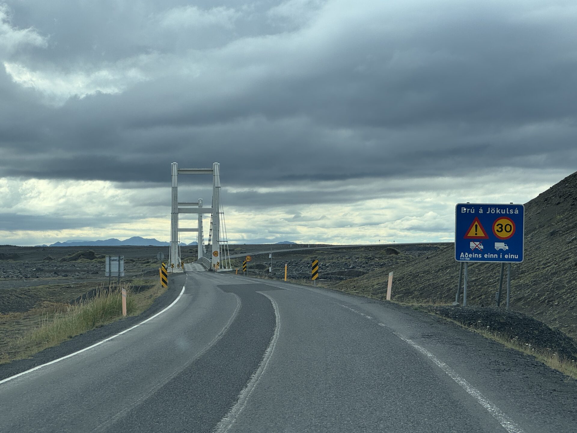 Nun ging es die ganzen 19 Kilometer zurück bis zur Ringstraße. Wir hatten den Fahrer getauscht. Nachdem Jan die erste Strecke heute Morgen gefahren war, übernahm ich nun das Steuer. Auf dem Rückweg kam uns die Strecke deutlich kürzer vor. Die Route 1 verläuft hier hinauf ins Hochland, das uns zunächst mit dicken Wolken und geringe Sichtweiten von unter 100m begrüßte. Mit Erreichen der Hochebene verließen wir die Wolken und die Sicht wurde deutlich besser. In der Nähe der Stadt Egilsstaðir waren noch sehr viele Bäume, Gräser und Buschwerk. Hier im Hochland zeichnete sich nun ein anderes Bild mit karger Vegetation und steinigen Flächen. Diese Landschaft sollte uns nun mehr als 100 Kilometer begleiten. Die Steinformationen auf den Ebenen erinnerten uns teilweise an Bilder vom Planeten Mars. Dennoch bot der Verlauf der Ringstraße hier immer wieder atemberaubende Panoramen in die weite Ferne. Das nächste Etappenziel war Islands größter Wasserfall, der Dettifoss. Der Fluss Jökulsá á Fjöllum stürzt hier über zwei Wasserfälle in eine bis über 100 Meter tiefe Schlucht, bevor er etwa 30 Kilometer weiter in den Arktischen Ozean mündet. Die tobenden Wassermassen am Fall haben uns wirklich beeindruckt und auch die kühle Gischt spürten wir schnell auf unseren Gesichtern. Auch der Weg vom Parkplatz zu den Wasserfällen beeindruckte durch zerklüftete Gesteinsformationen.