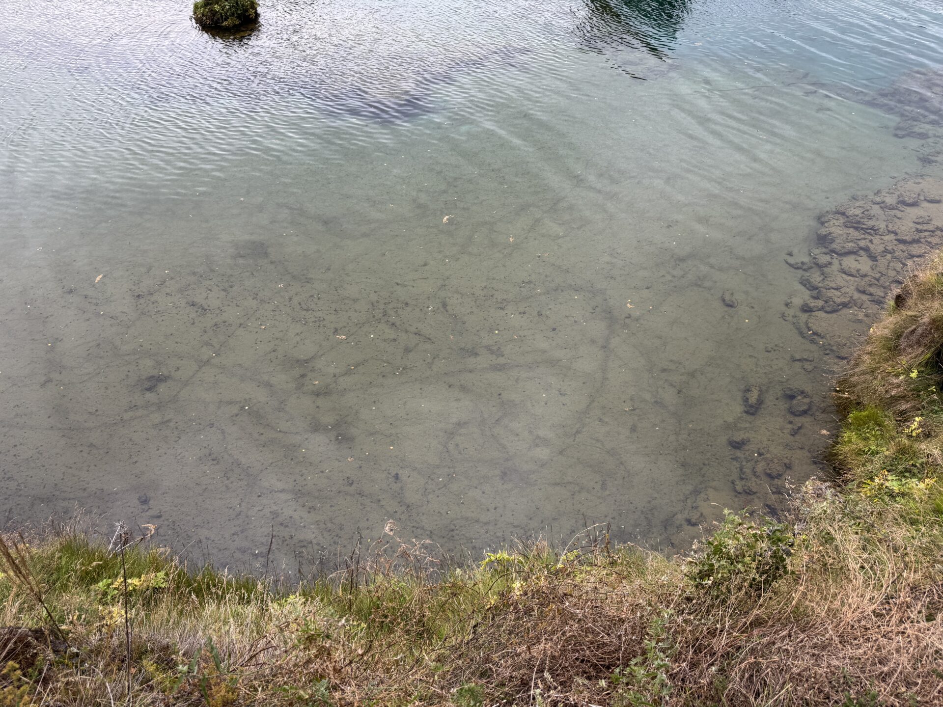 Mit vollem Tank und noch vollerem Magen ging es weiter zum nächsten Etappenziel, dem See Mývatn. Hier bieten sich entlang des Seeufers viele Möglichkeiten für kurze Spaziergänge mit wunderbaren Aussichten auf das ruhige und klare Wasser des Sees. Wir wollten uns das „Waldgebiet“ Höfði ansehen. Hier führen viele kleine Wege quer durch ein kleines Wäldchen und laden besonders Vogelkundler (Ornithologen) zum Beobachten ein. Wir haben auch einige Vögel gesehen, aber vor Allem gehört. Permanent war das Zwitschern der Vögel zwischen den Bäumen zu hören. Der kleine, gepflegte Rundweg erstreckte sich einmal rings um die kleine Halbinsel und führte zunächst durch den Wald und dann entlang des Seeufers. Was uns hier besonders auffiel, war der See, der scheinbar keine Fische und auch kaum Wasserpflanzen enthält. Zum Ende unserer Wanderung setzte der typische, isländische Regen wieder ein und wir beeilten uns noch trocken zum Auto zu kommen. Eigentlich hatten wir noch eine weitere Wanderung geplant, die aber nun ins Wasser fiel. Wir entschieden uns direkt zur heutigen Unterkunft nahe Laugar weiterzufahren. Das Vestmannsvatn Guesthouse ist ein ehemaliges Ferienlager für Kinder der christlichen Kirche, das bereits im letzten Jahrhundert aufgegeben wurde. Die neuen Besitzer haben die beiden Gebäude aufwendig saniert und vermieten hier Räumlichkeiten für Reisende. Vereinzelte Details, wie das Kreuz neben der Tür oder die Glocke am Balken, zeugen noch immer von der Vergangenheit der Gebäude. Vom Aufenthaltsraum hat man einen tollen Blick über die nähere Umgebung und den nahegelegenen See. Diesen konnten wir auch noch in der Dunkelheit bei Sternenhimmel im Whirlpool bewundern.