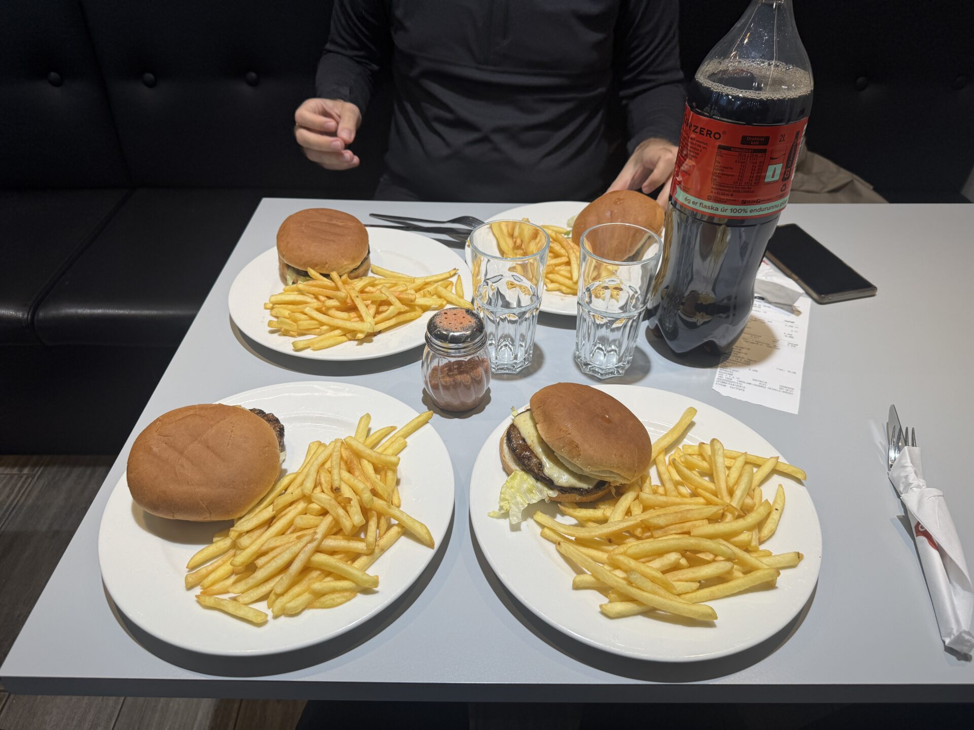 Nach diesem tollen Erlebnis verabschiedeten wir uns auch von den Tour-Guides und suchten im Ort nach einer Einkaufsmöglichkeit. Typischerweise haben diese kleinen Orte irgendeinen Supermarkt, mit mehr oder wenige großem Angebot. In Dalvik war es eine Filiale der Kette Kjörbúðin. Diese hatte ein reichhaltiges Angebot und zu unserer Überraschung sogar geräuchertes Walfleisch. Das wollten wir definitiv probieren. Für 110g bezahlten wir etwas 8,50€. Geschmacklich ist Walfleisch interessant, da es optisch mit seiner Konsistenz an Wild erinnert und dann in einem fischigen Abgang nachschmeckt. Frisch gestärkt, traten wir die letzte lange Etappe für den heutigen Fahrtag an. Wir mussten noch mehr als 100 Kilometer bis zu unserer Unterkunft zurücklegen und wollten auf dem Weg noch etwas Richtiges essen. Von Dalvik fuhren wir die 34 km zurück bis zu Ringstraße und dann bei nebeligem Regenwetter weiter Richtung Westen bis nach Varmahlíð. Diese kleine Siedlung bietet eine Kombination aus Tankstelle, Supermarkt und Bistro an. Dort konnten wir ähnlich einem McDonald’s Burger und Fritten bestellen. Von dort waren es nur noch wenige Kilometer bis zum Karuna Guesthouse, unserer heutigen Unterkunft.