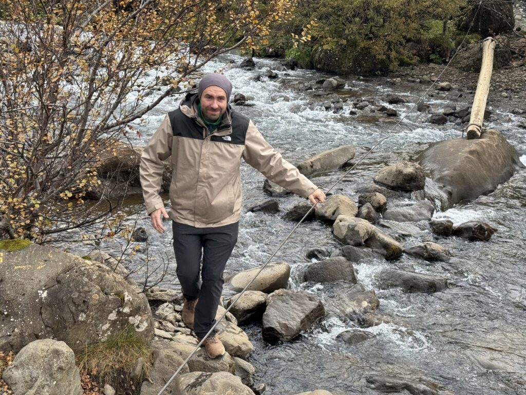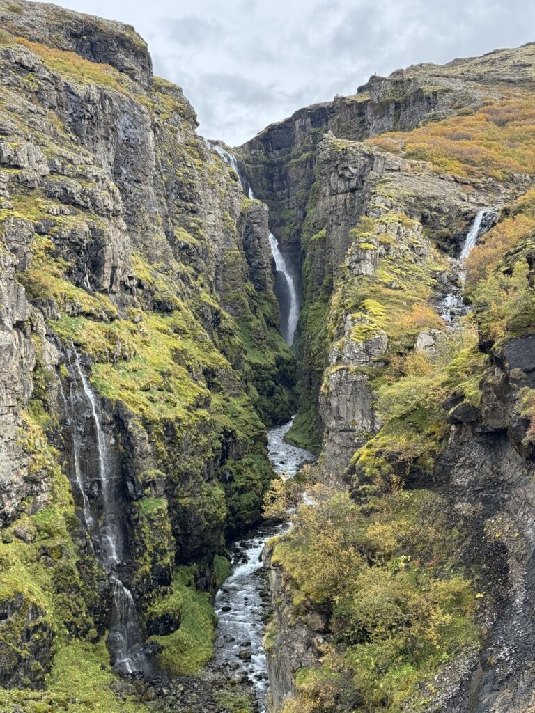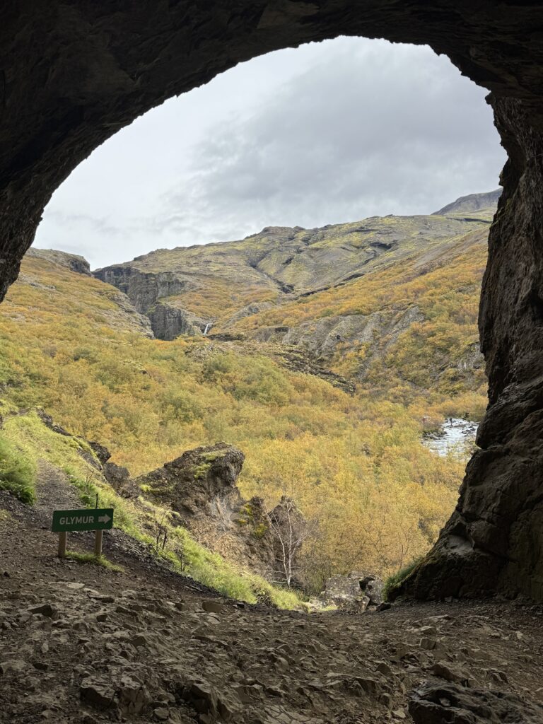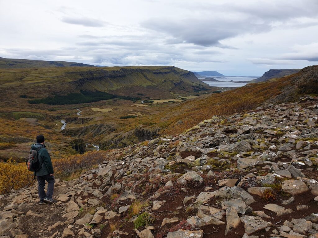 Heute Morgen wurden wir von Sonnenstrahlen geweckt, die durch das Fenster fielen. Obwohl der Himmel noch immer wolkenverhangen war, schafften es einige Strahlen sich ihren Weg zu bahnen. Welch‘ schönes Wetter am Morgen. Wir aßen unser typisches Frühstück, Porridge mit Äpfeln und Crunch. Dazu den obligatorischen Kaffee. Dabei genossen wir noch den Blick vom Küchentisch nach draußen auf den Bauernhof. Der Besitzer war gerade dabei ein Quad-Bike vom Anhänger seines Autos zu entladen, da er am Vortag mit diesem den Zusammentrieb der Schafe unterstützt hatte. Uns wurde von der Bäuerin erklärt, dass gerade alle Schafbesitzer gemeinsam die Schafe von den Freiflächen holen, um sie anschließend aufzuteilen und nach Hause zu holen. Nach dem Frühstück packten wir zügig unsere Sachen zusammen und begaben uns auf die heutige Etappe. Zunächst fuhren wir wieder nach Borgarnes, um dort auf der Ringstraße einige Kilometer Richtung Süden zu fahren. Diese überquert hinter der Stadt den Fjord Borgarfjörður über einen langen Damm und eine Brücke. Schon nach 15 Kilometern fuhren wir auf eine kleinere Landstraße Richtung Osten ab, die an einem anderen Fjord, dem Hvalfjörður, entlang führt. Hier fielen uns die vielen kleinen Häuser am nördlichen Berghang auf, die vermutlich von wohlhabenden Familien aus Reykjavik als Wochenend- oder Sommerhäuser genutzt werden. Unser erster Etappenziel sollte der Wasserfall Glymur sein, den wir nach weiteren 20 Minuten Fahrt am Ostende des Fjords erreichten.