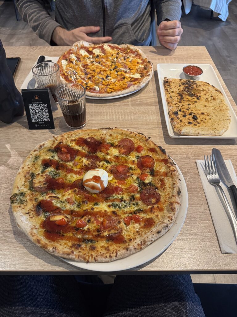 Nachdem wir im Hotel eingecheckt hatten, sprangen wir beide nacheinander unter die Dusche und erfrischten uns. Die Wasserfall-Wanderung am Vormittag hatte uns ordentlich schwitzen lassen. Nun wollten wir noch etwas Essen, um auch unsere Energiereserven wieder aufzutanken. Daher sollte es etwas deftiger werden. Wir fanden eine gut bewertete Pizzeria nur wenige Fahrminuten vom Hotel entfernt und ließen uns zwei große Pizzen schmecken.