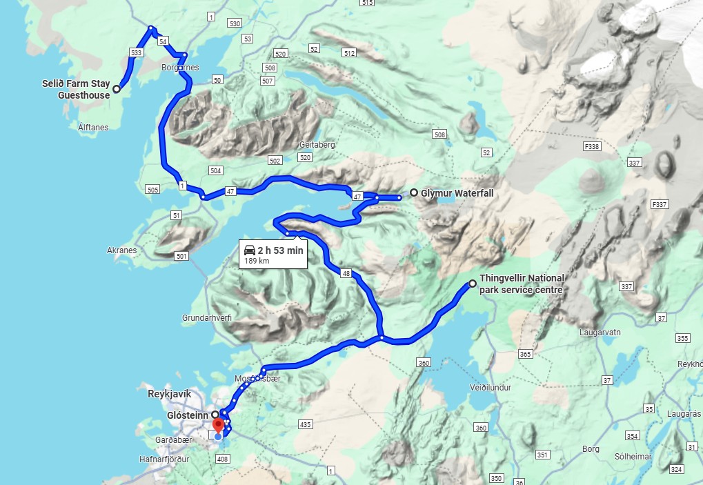 Nun verließen wir den Nationalpark auf derselben Straße, die wir zuvor gekommen waren. Wie wir auf unserer Reise gelernt haben, ist die Anzahl der Verbindungsstraßen auf Island deutlich kleiner als zuhause in Deutschland. Die Landstraße 36 traf bei Mosfellsbær wieder auf die Route 1, der wir dann erneut Richtung Süden folgten. Zu unserer Überraschung war die Ringstraße hier zweispurig ausgebaut und erinnerte ein wenig an Deutsche Autobahnen, abgesehen von den Kreisverkehren an den Abfahrten. Unsere heutige Unterkunft war ein Hotel in Kópavogur, einer Stadtgemeinde östlich von Reykjavik. Hier verließen wir nun zum letzten Mal die Ringstraße, da sie von hier aus wieder nach Osten in Richtung der Stadt Hveragerði verläuft, die wir an unserem ersten Tag auf Island besucht hatten. Wir haben den Ring an dieser Stelle für uns geschlossen!